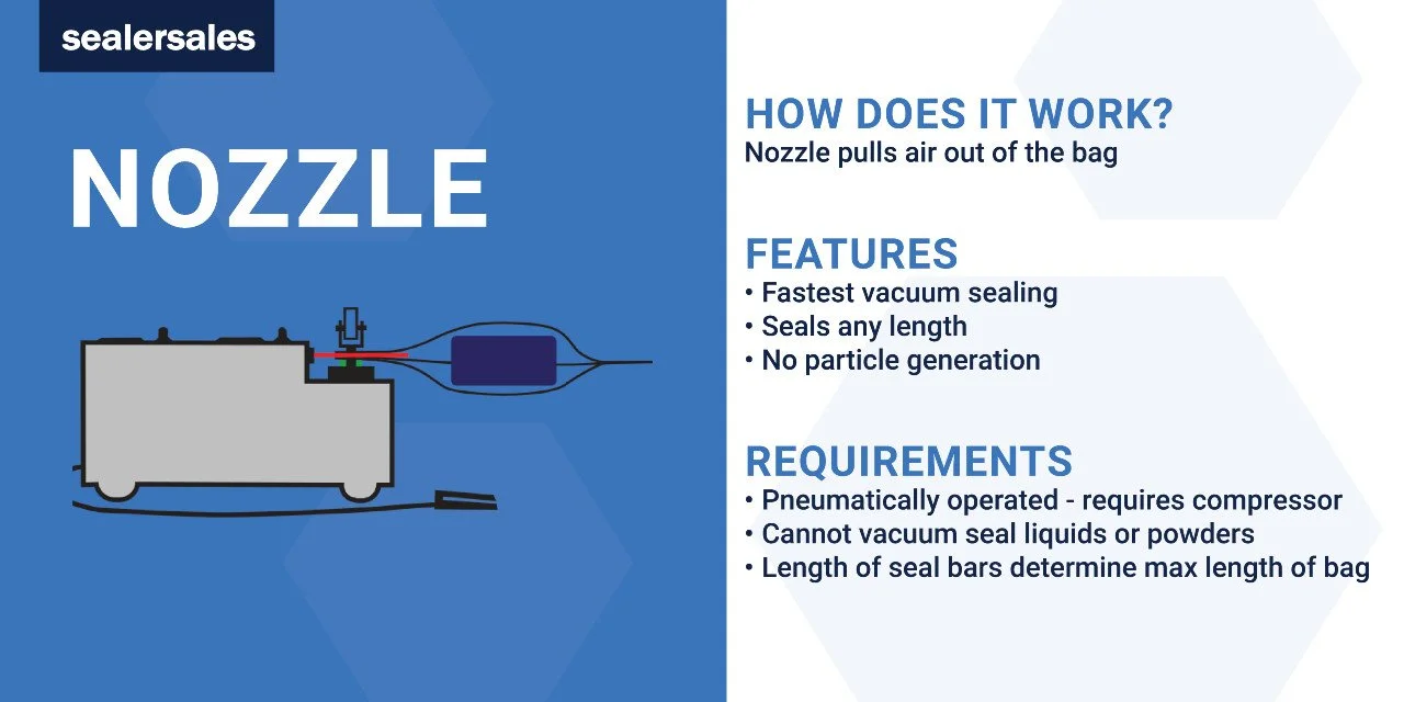 Vacuum cycle tends to be longer than in nozzle vacuum sealers